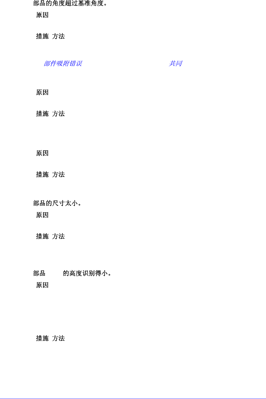 1-71 30% 。 如果吸嘴上有异物,要去除异物。 请参照 $a635 的措施方法。 $aa10 Lead [ ] 实际上没有吸着到部品的情况。 部品的 Body Y 输入有错误的情况。 部品的 T olerance H 设定为太低的情况。 吸嘴上粘有异物的情况。 [ ] 确认是否正确地吸着部品。 在 P CB E dit 菜 单的 P ar t 选 择错误 发 生部件 , 在 P ro fi le E…