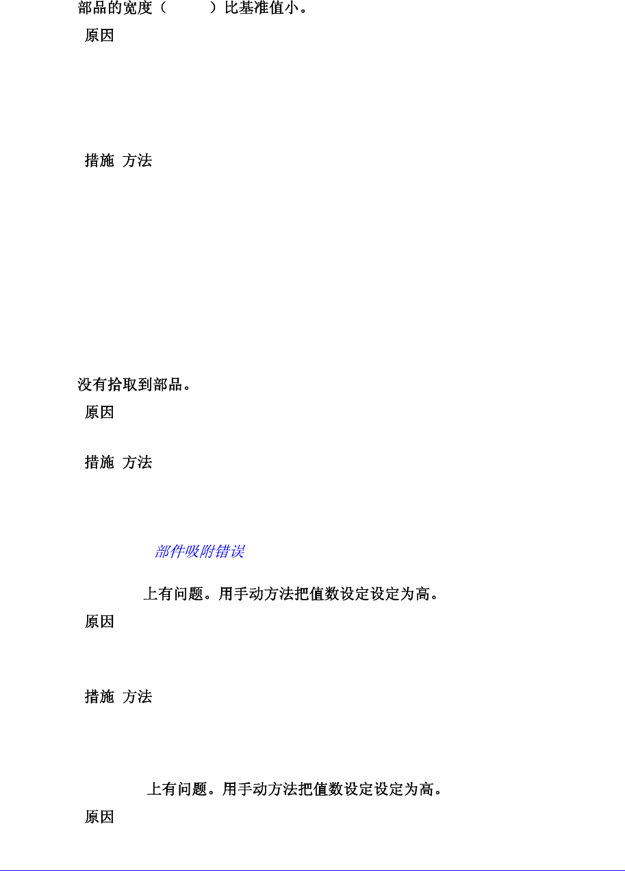 1-75 Threshold 值数太低的情 况。 吸嘴严重损坏的情况。 [ ] 在 PCB Edit 菜单的 Part 选择错误发生部 件,在 Profi le Editor 提高 Threshold 值 或确 认吸嘴状态。 请参照 $a635 的措施方法。 $ab00 VME [ ] 由 VME 传 送错误角度的情况。 [ ] 正常关闭设备电源过 5 秒后再连接电源重新启动。 $ab01 VME Algorit…