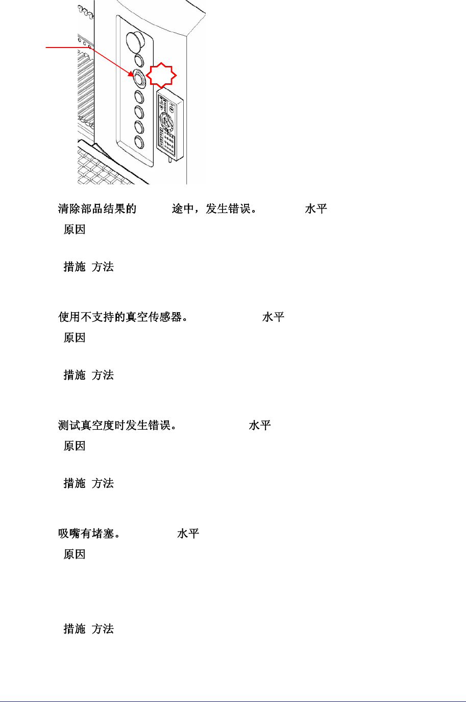 由于 H/W 或 S/W 的异常状况,测试真空度失败的情况。