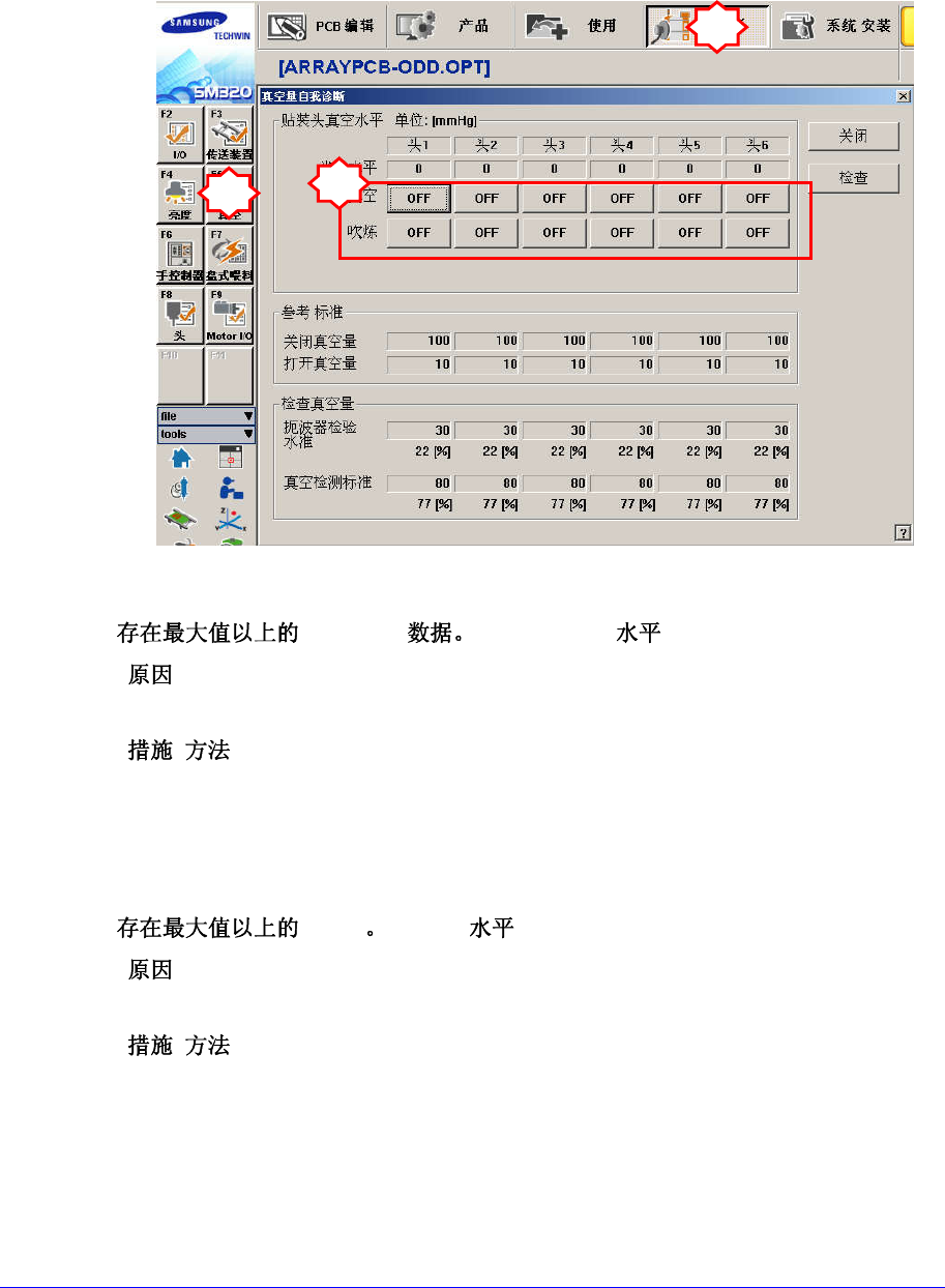 确认Vacuum传感器后在Diagnosis 菜单的 Vacuum对错误发生磁头执行真空检验