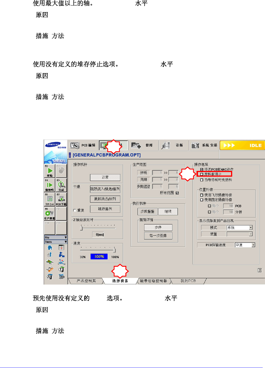 1-97 如果 MMI 的版本为 ver . 2.1 19 , VME 的版本为 ver . 2.500 以 上 Array PCB 的最 大值为 400 只 。 ( 两个版本必须都是以上版本以上。 ) $bc08 [MPU_STOP ] [ ] 由于 S/ W 的异常状况,设定最大值以上轴的情况。 [ ] 正常关闭设备电源过 5 秒后再连接电源重新启动。 $bc09 [MPU_STOP ] [ ] 由于 S/ W 的异…