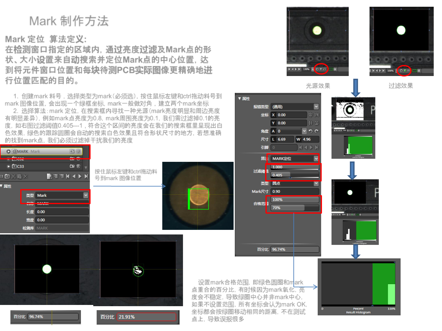 设置mark合格范围,即绿色圆圈和mark