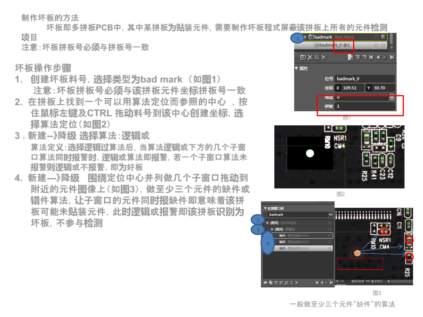 附近的元件图像上(如图3),做至少三个元件的缺件或