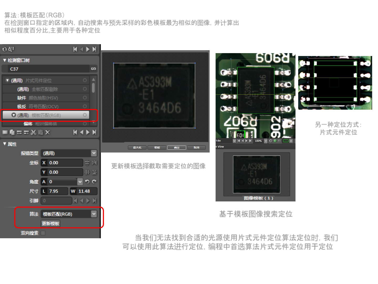 可以使用此算法进行定位,编程中首选算法片式元件定位用于定位