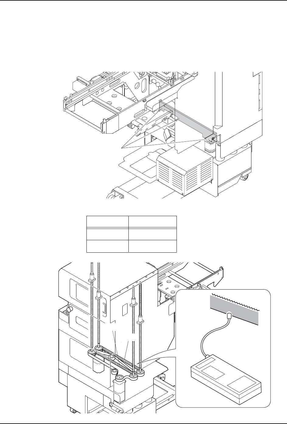 6. 预防保养 QD145-21 334 NXT II 机械手册 6.10.22 料盘单元 -LT 皮带张力的检查 · 调整 在确认皮带张力时,请预先准备 张力计。另外,请拆除料盘单元 -LT。( 详细请参考 「5.6 料盘单元 -LT 的拆除 / 安装」) 〈TZ1/TZ2 轴皮带张力〉 1. 请拆除 3 根螺丝后拿掉料盘单元 -LT 的下方盖板 (如图所示) 。 2. 请测定各皮带张力。跨度最长的皮 带中央的张力值必须在规定范围内 …