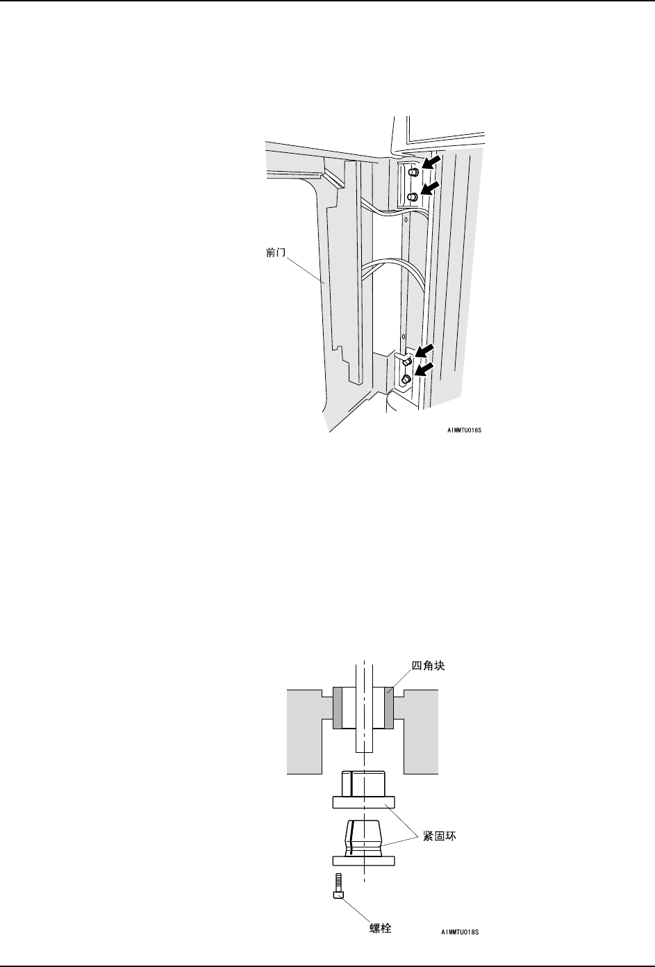 b. 拆除前门铰接部的固定螺栓 (4 根)。