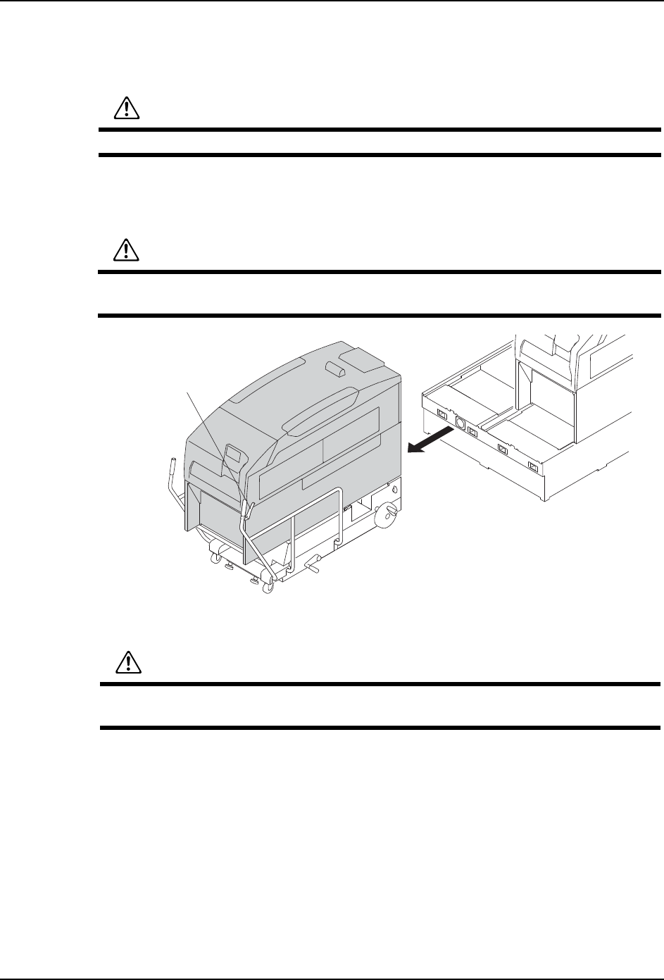 QD145-21 5. 基本操作 NXT II 机械手册 107 b. 模组移动结束后,将 MCU 的旋钮对准 「LOCK」的位置。固定模组在 MCU 上。 c. 从基座侧拉出电缆托架,小心地从 模组中取出。 9. 降下 MCU 的后轮 ( 仅仅限于用步骤 (3) 调整水平的时候 ) a. 旋转摇手柄,降低后轮 ( 提升升降脚 ) b. 同样,前轮也下降。 NXTOPE 006 Sb ᮟ䪂 注意 在机器前侧进行操作的时候 , 请注意不要…