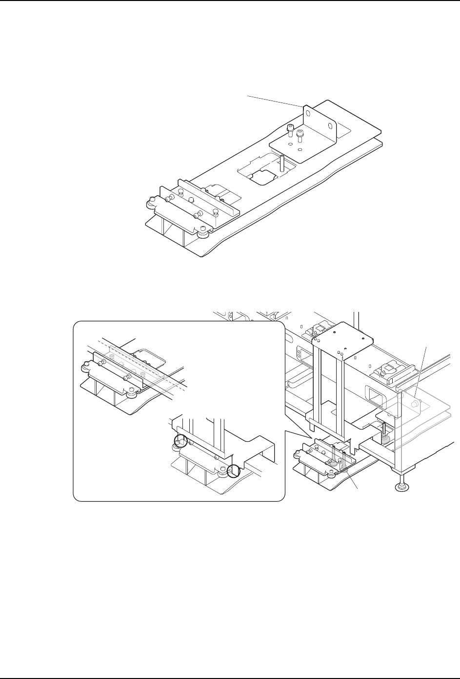 9. 一边旋转 PCU 导轨的 3 个高度调整螺栓使其上升,一边与安装 PCU 导轨的位置对齐。前