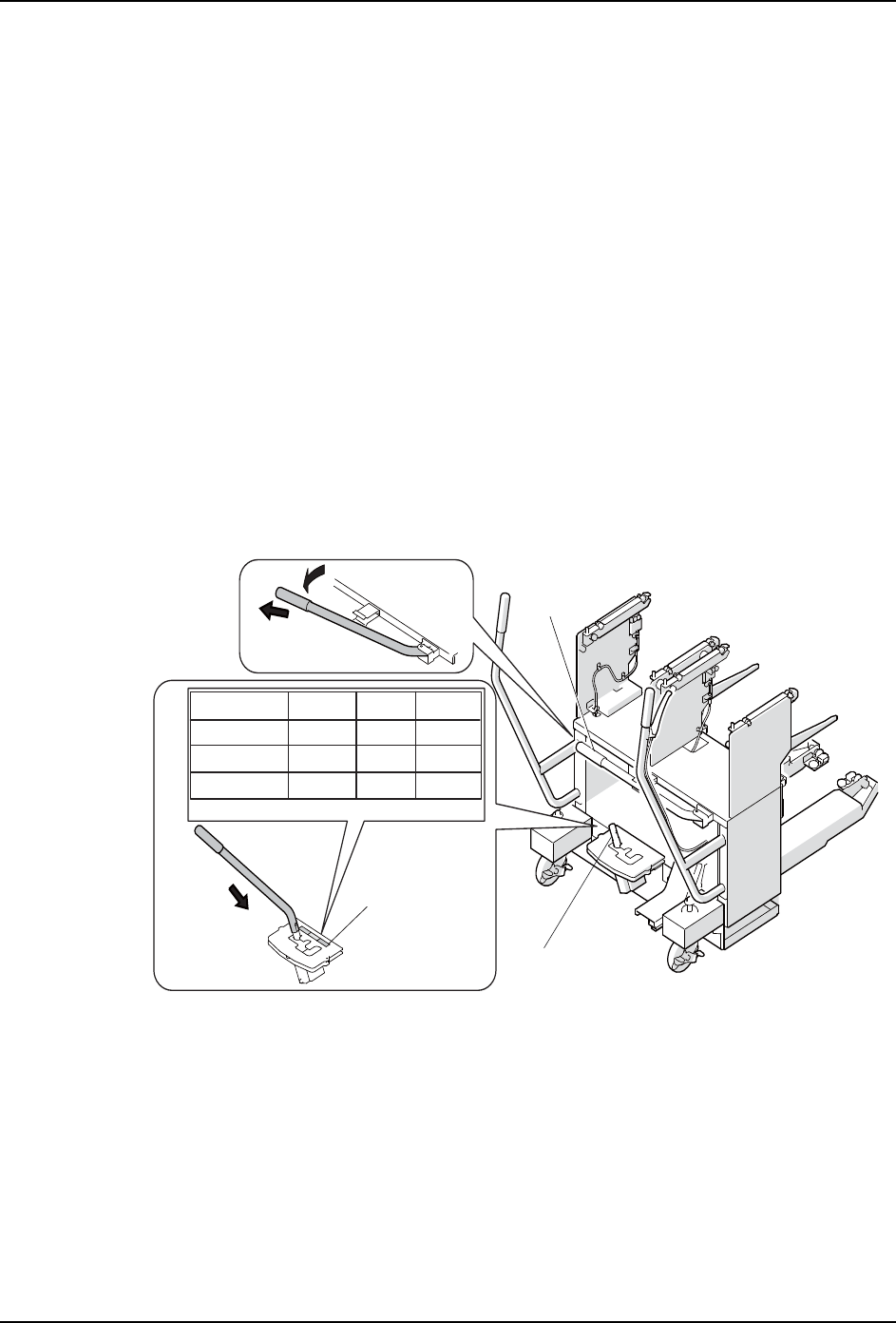 2. 在高度调节手柄的切换位置上贴有蓝色、绿色、橙色的标签。使用对应搬运高度为