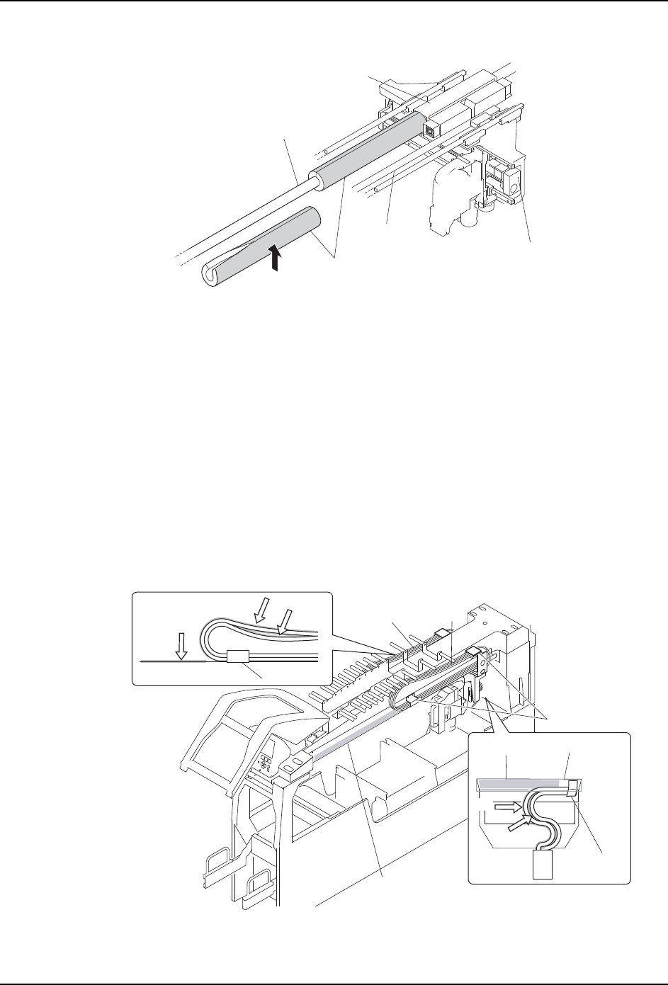 6. 请确认卷在平形电缆上的纤维胶带 ( 宽度 30mm 左右的银色胶带 ) 的状态。如果看见有