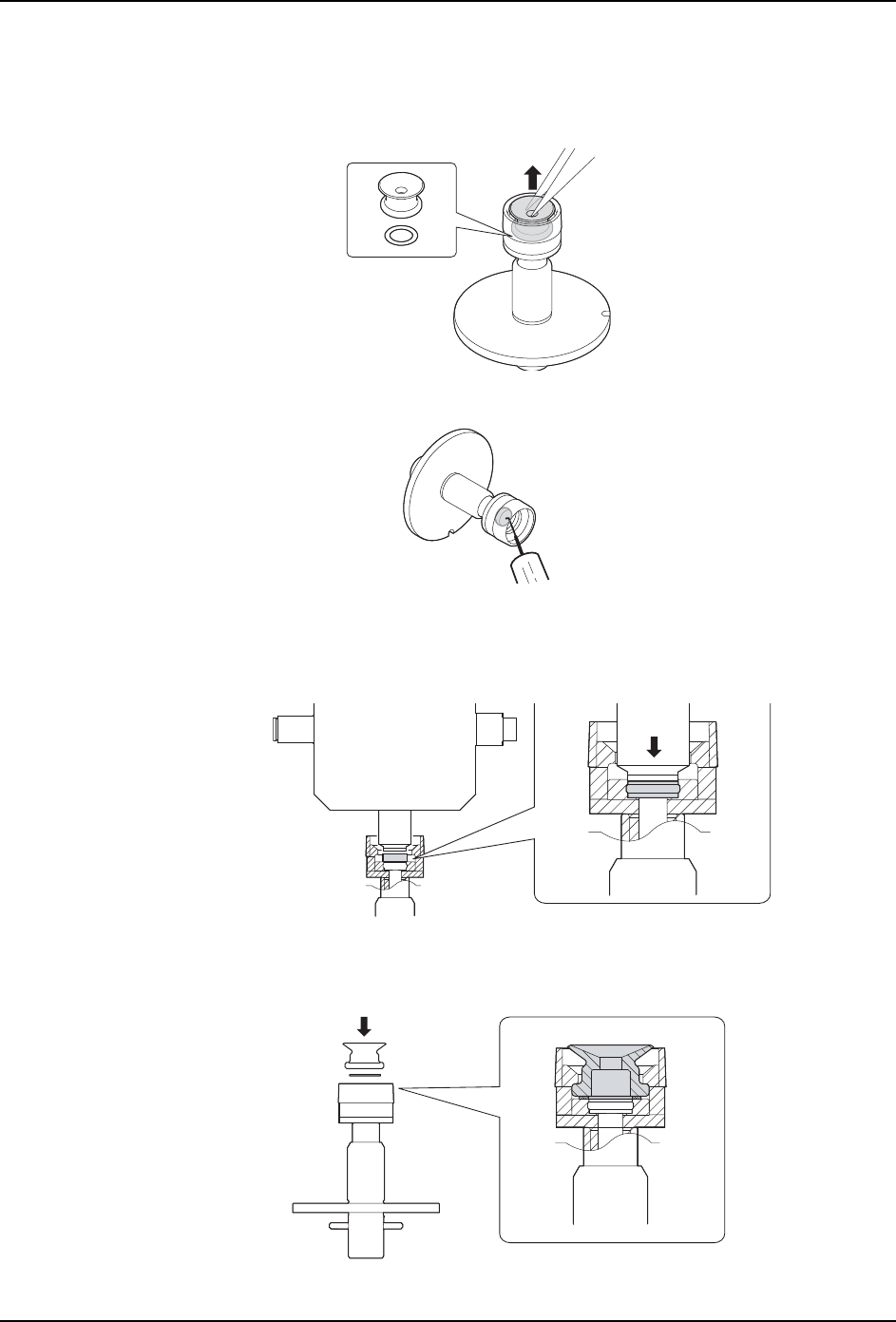 f. 请更进一步压入过滤器插入治具,将橡胶垫从橡胶垫用过滤器安装治具上取下。