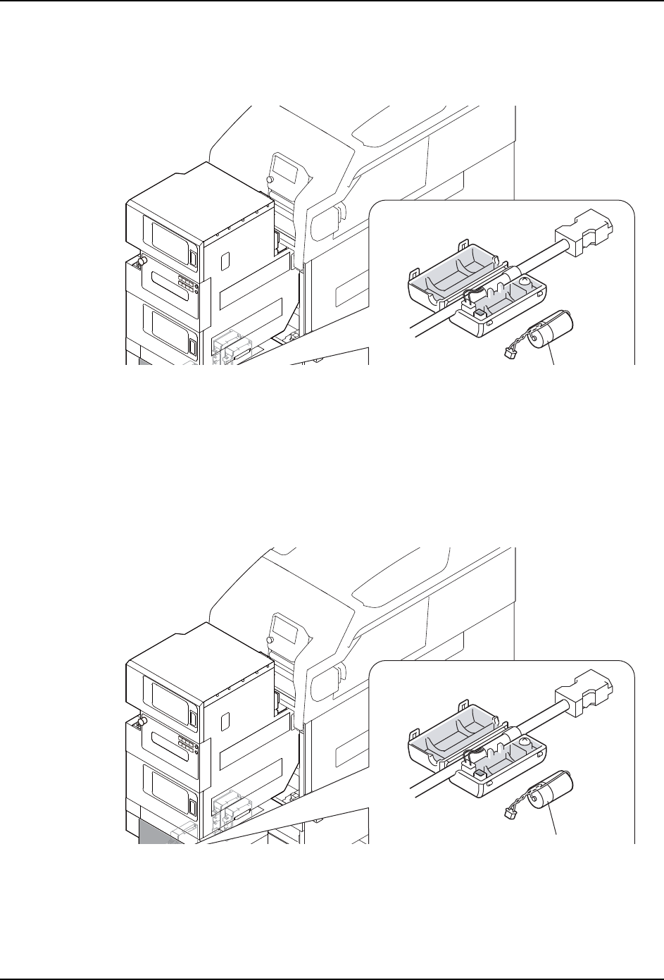 8. 请以与拆除相反的顺序旋转料盘单元 -LT 到原来的状态。
