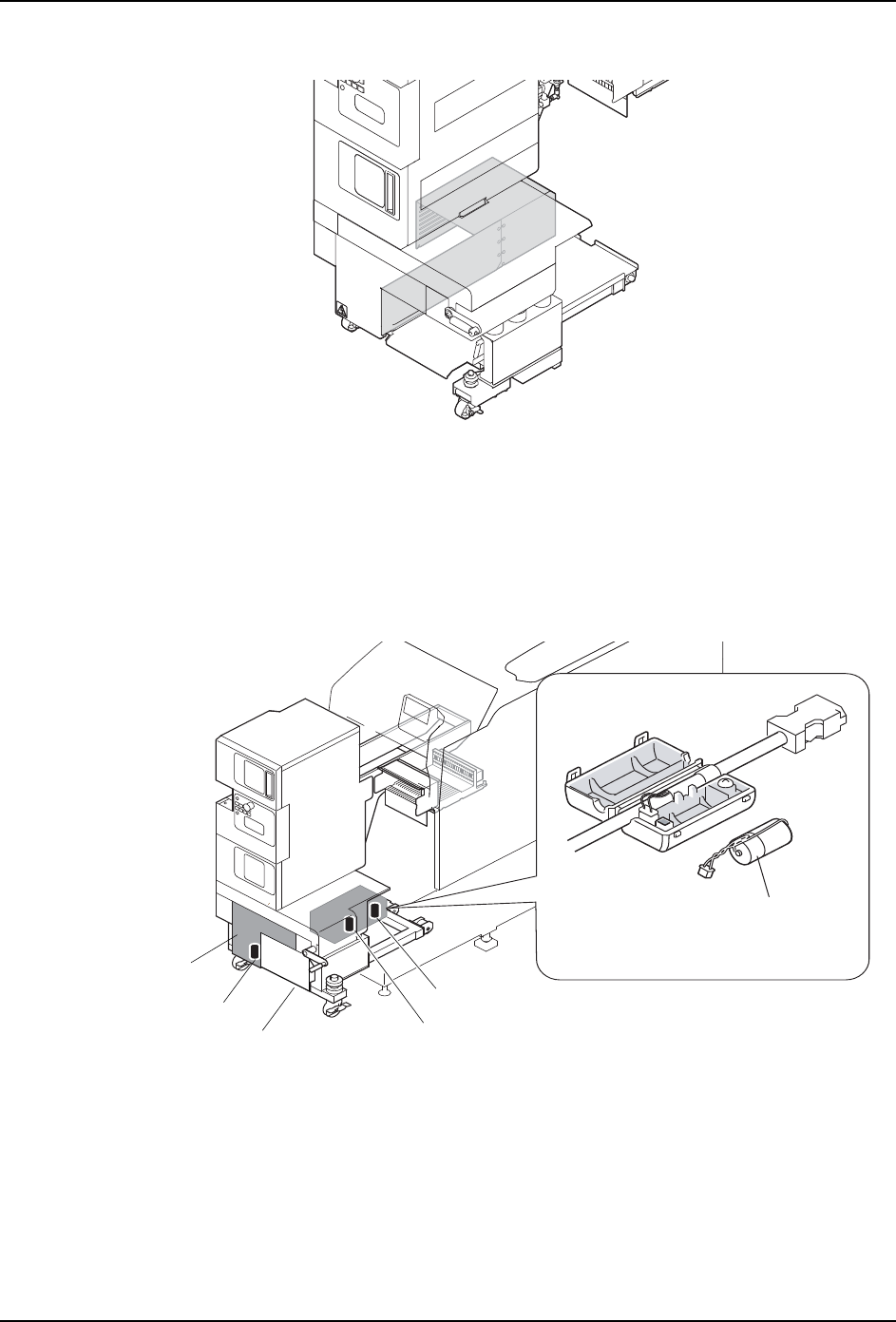 QD145-21 7. 消耗品的更换 NXT II 机械手册 447 7.24 料盘单元 -LTC 中转电路板的保险丝的更换 料盘单元 -LTC 中转电路板保险丝的更换请在模组拆下来 的状态下进行。 7.24.1 更换方法 1. 请拧松螺丝,拆下料盘单元 -LTC 的左侧面下部的盖罩。 2. 请从中转电路板上一个个拆下保险 丝 (T1F1 ~ 9) ,用目测确认有否烧断。没有烧断的 保险丝,请返回到原来的地方。 3. 确认有烧断的保险丝…