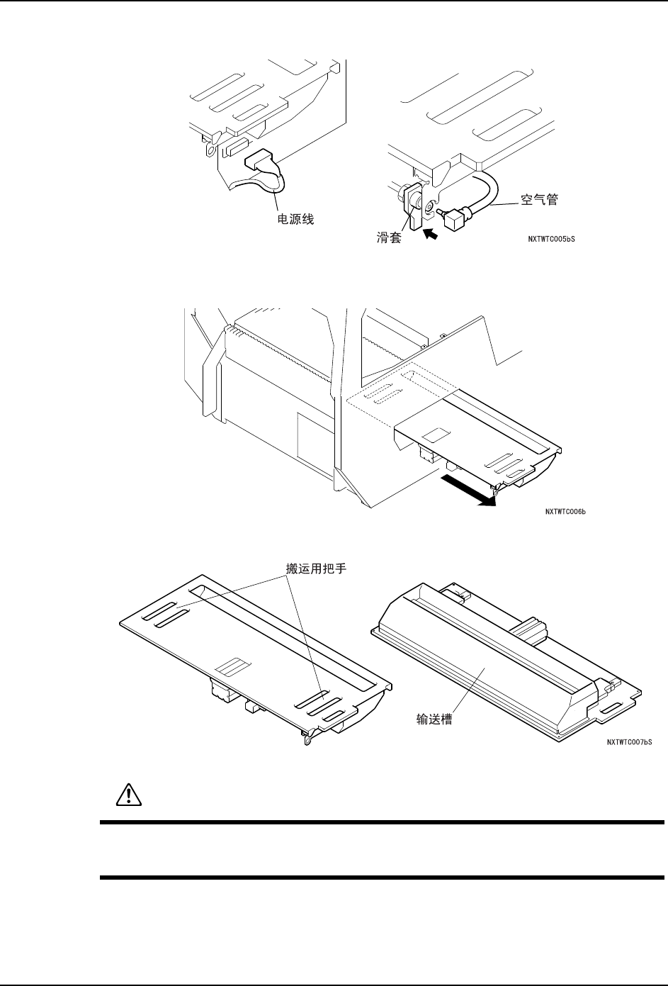 ·输送槽中有阶梯,这个阶梯在拆下单元时折叠部份处于自由状态。非常危险,在搬运