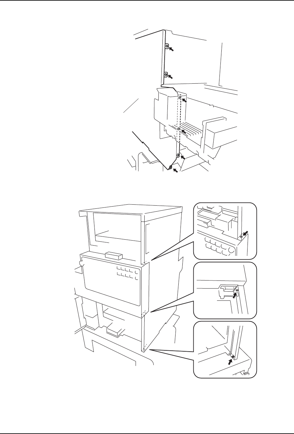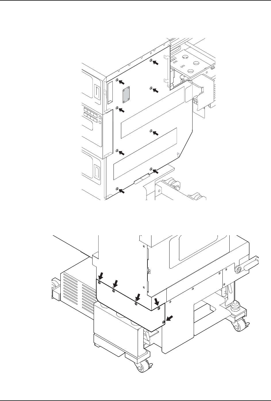 3. 请拆除6根位于料盘单元后面的侧盖板(右)的安装螺丝。