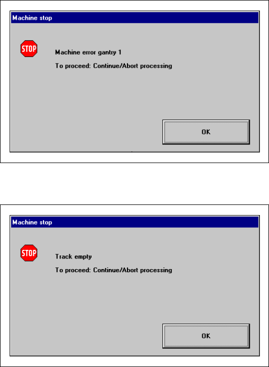 Hvis der opstår en sporfejl, en maskinfejl eller en transportfejl, åbnes et vindue på skærmen (se