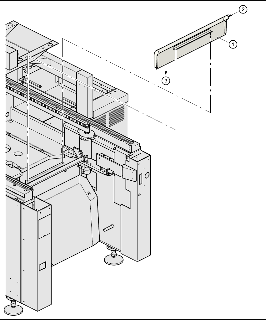 ponent-udskiftningsborde er monteret. Den benyttes til at skære tapeaffaldet i stykker.