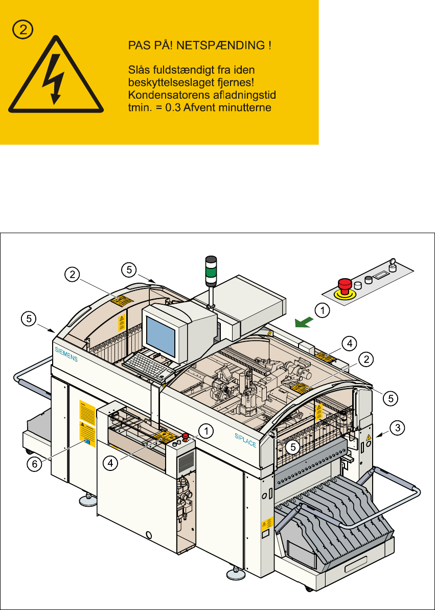 2 Driftssikkerhed Driftsvejledning SIPLACE F 5/F5 HM 2.1 Sikkerhedsvejledninger Softwareversion SR .407.xx Udgave 01/2001 DK 68 2 Pos. 1 på Fig. 2.1 - 4 Ad varsels skilte p å grundm askinen - NAFT A-reg ion 2 2 Pos. 2 på…