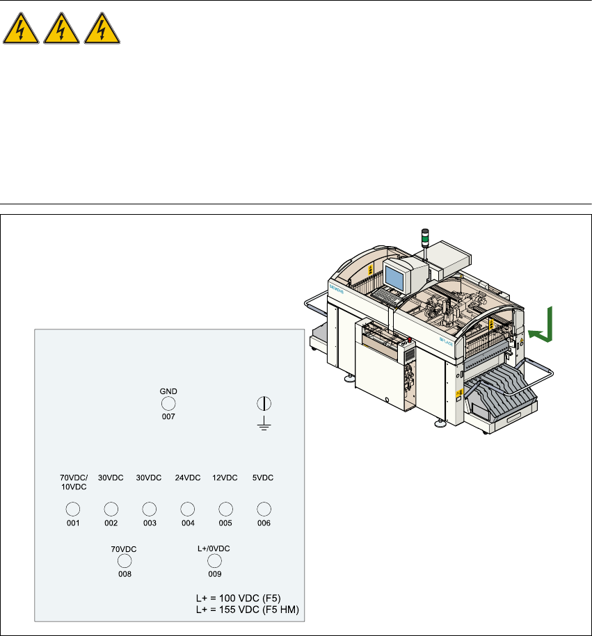 Automaterne fra SIPLACE-familien forsynes med 3x400V~ (3x208 V~, U.S.A.) ± 5 %, 50/60 Hz