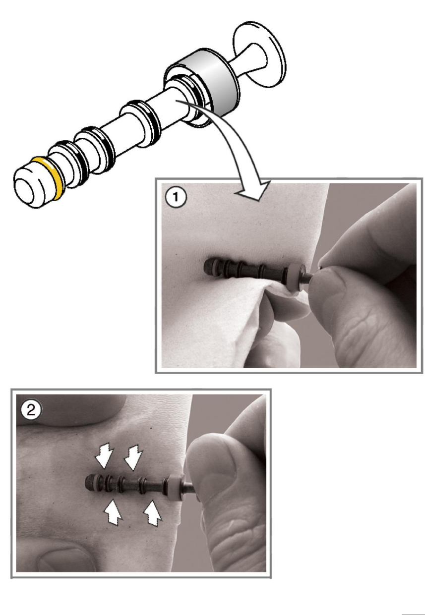 D4 预防性维护 10 保养阀门推 杆 2008 年 8 月中文版 若要维 护阀 门推杆 ,您将 需要 : - - - 阀门推 杆 C&P 1 2 ( 6 个一 包)( 部件号 0035 1498-03 ) ISOFLEX TO PAS NCA 52 ( 部件号 003283 69-01, 00330850-0 1, 50g / 管 ) 无纺布 ① 用干 无纺 布擦拭 阀门 推杆。 ○ 检查密 封圈 、弹簧 式 O 形圈和段 位…