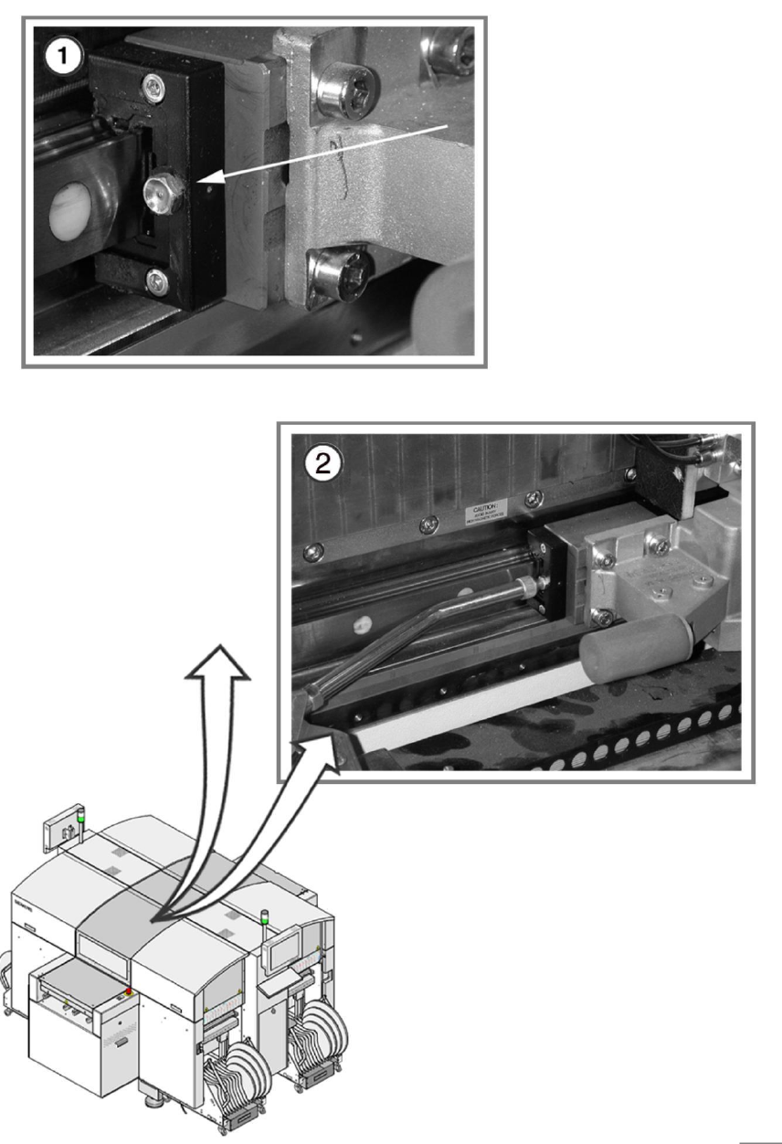 D4 预防性维护 8 年度维护 2008 年 8 月中文版 润滑 Y 轴 悬臂 ① 逆时针 旋转 黄油枪 ,将其 打开 。 ② 拉回黄 油枪 柱塞, 必须将 黄油 枪柱塞 锁定入 位。 ③ 用 IS OFL EX TO PAS NCA 52 润 滑脂 填充 黄油枪 。 ○ 顺时针 旋转 黄油枪 ,将其 关闭 。 ④ 解开锁 弹力将 柱塞 向前移 。 ⑤ 推回通 风螺 钉上的 圆球, 为黄 油枪留 出润滑 通道 。 ○ 按下触 发器 ,直…