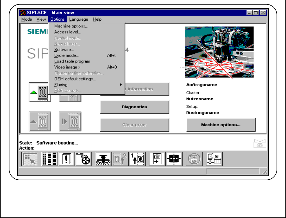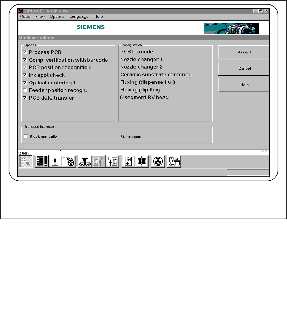 2 Introduction and Basic Concepts SIPLACE 80S-20/F4/F4-6/F5 User’s Manual 2.4 Brief Description and Principles of the User Interface Edition 03/98 from Software Version SR.404.xx 2 - 36 2.4. 4.1 Machine O ptions Fig. 2.4…