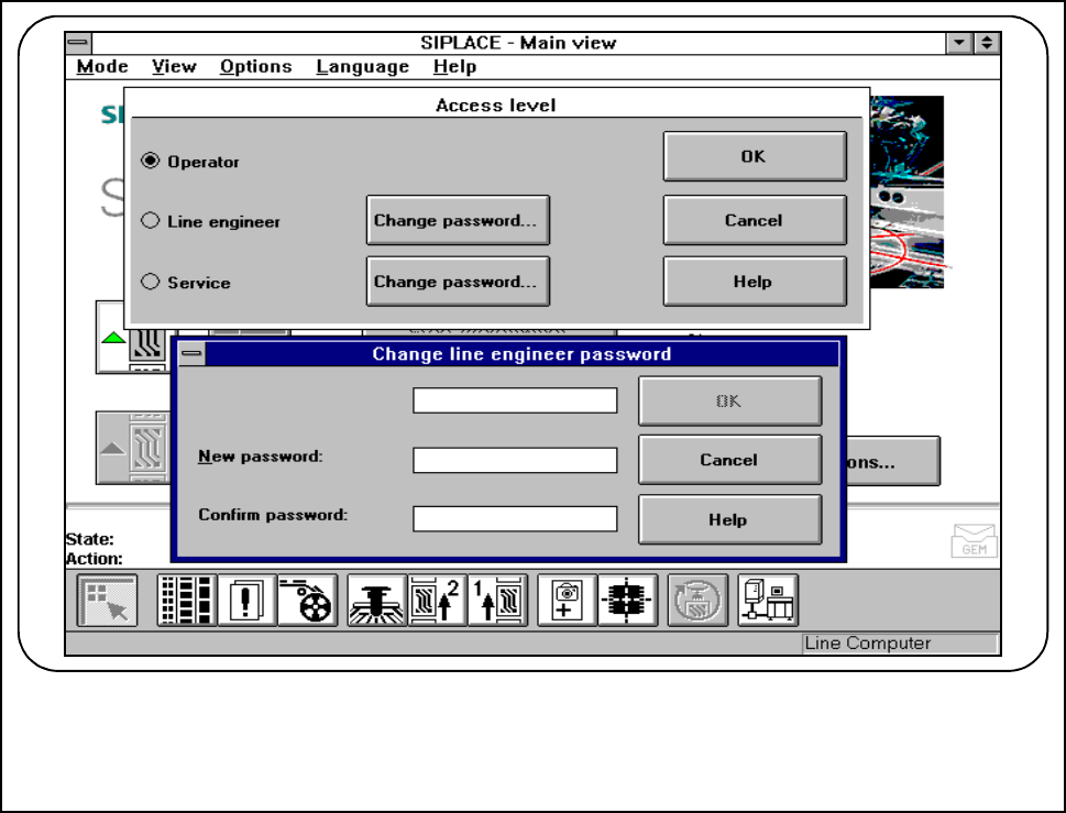 Passwords may be allocated for the Line engineer and Service technician operator control levels (see Fig.