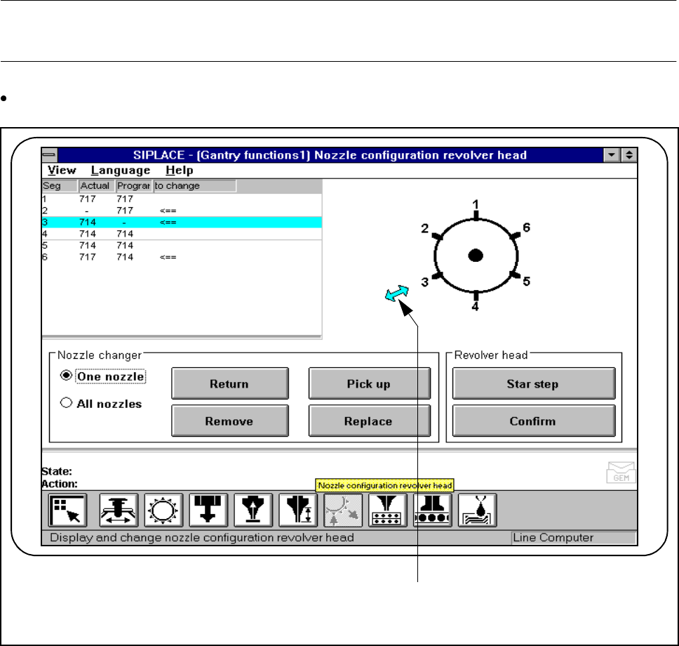 SIPLACE 80S- 20/F4/F4-6 User’s Manual 4 Single Functions Edition 07/97 from Software Version SR.403.xx 4.3 Single F unctions, Gantry with 6x Revolver Head (for 80F 4-6) 4 - 35 4.3.5 Nozzle Offset, 6x Revolver Hea d This …