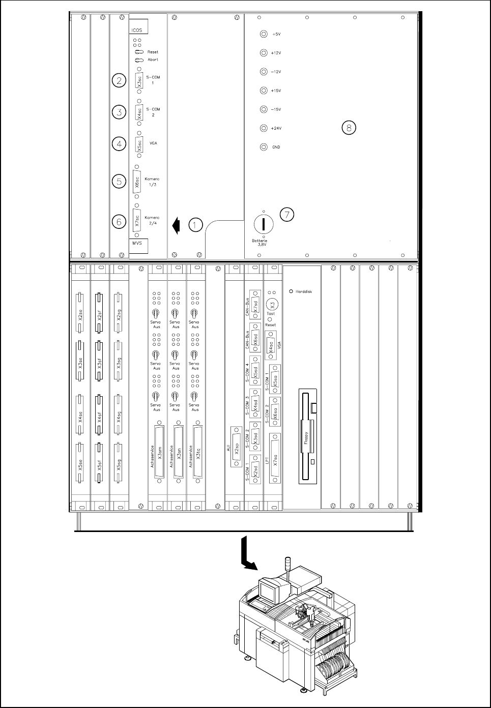 nent position recognition at the IC head are mounted on the machine base (see Fig. 5.1.6, Page 5 - 9).