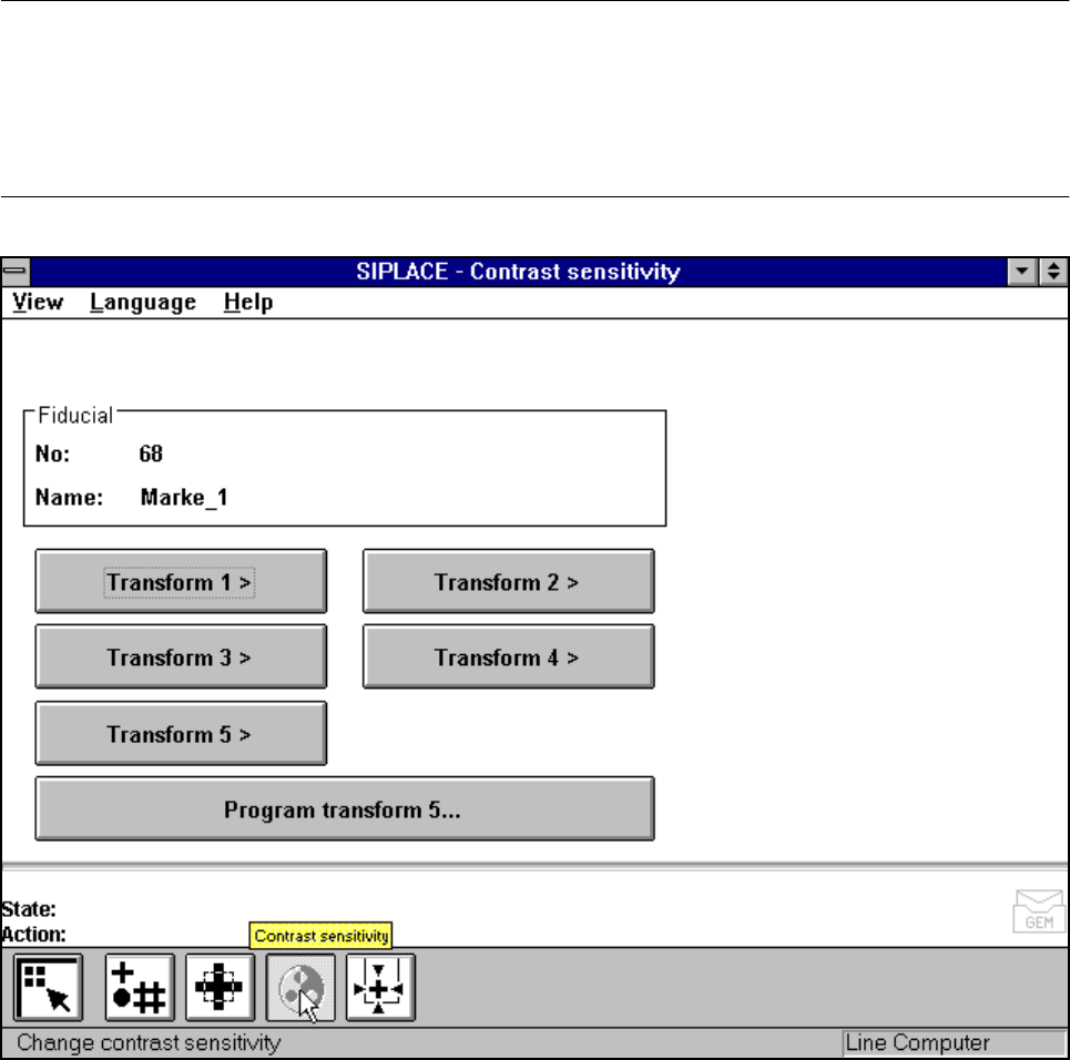 SIPLACE 80S-20/F4/F4-6/F5 User’s Manual 5 Vision Functi on s Edition 03/98 from S oftware Version SR.404.xx 5.5 Teach Fiducial Line engi neer 5 - 61 To make i t easi er for you to asses s the ra nge of br ightness or the…