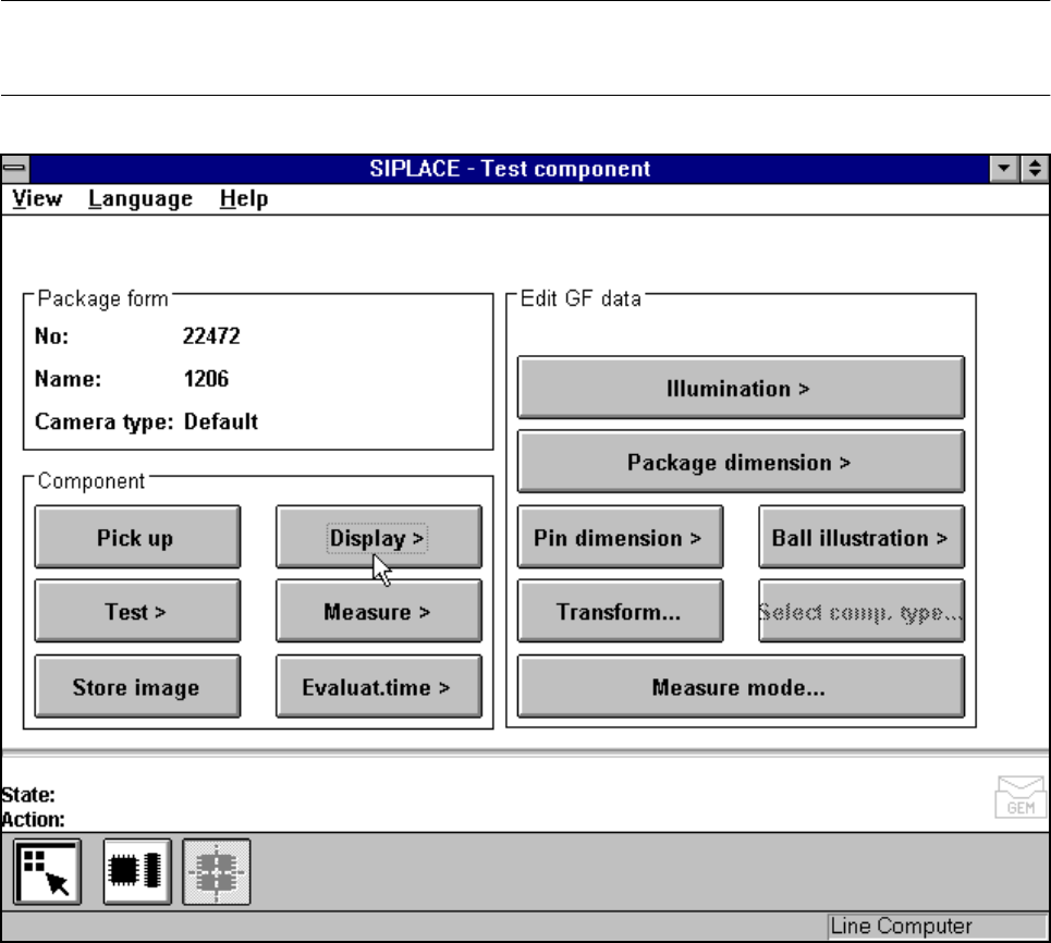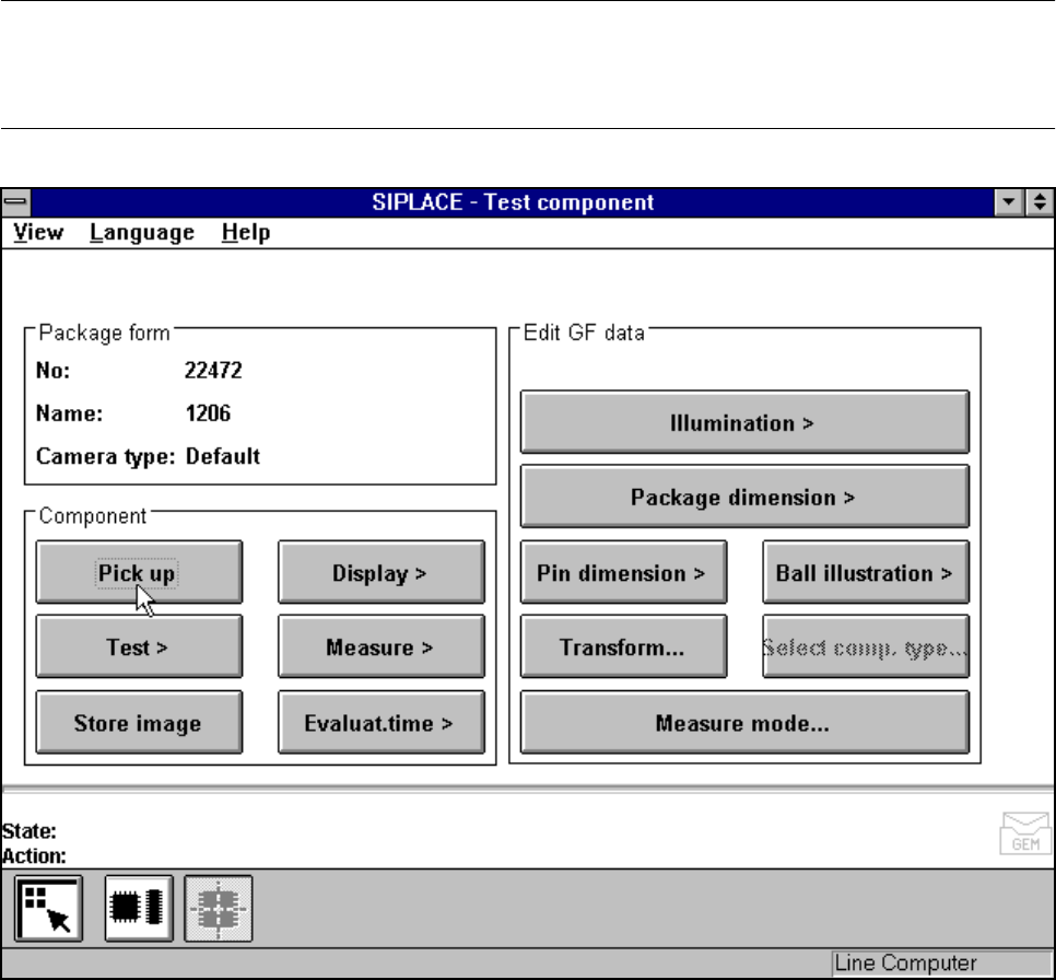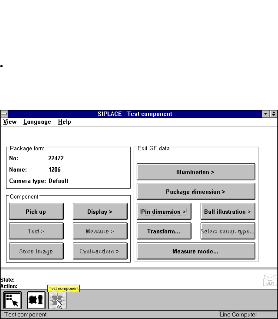 SIPLACE 80S-20/F4/F4-6/F5 User’s Manual 5 Vision Functi on s Edition 03/98 from S oftware Version SR.404.xx 5.6 Test Component Line engi neer 5 - 83 5.6. 4.1 Pick Up Component Opt ion NOTE Before y ou can a ctivate this …