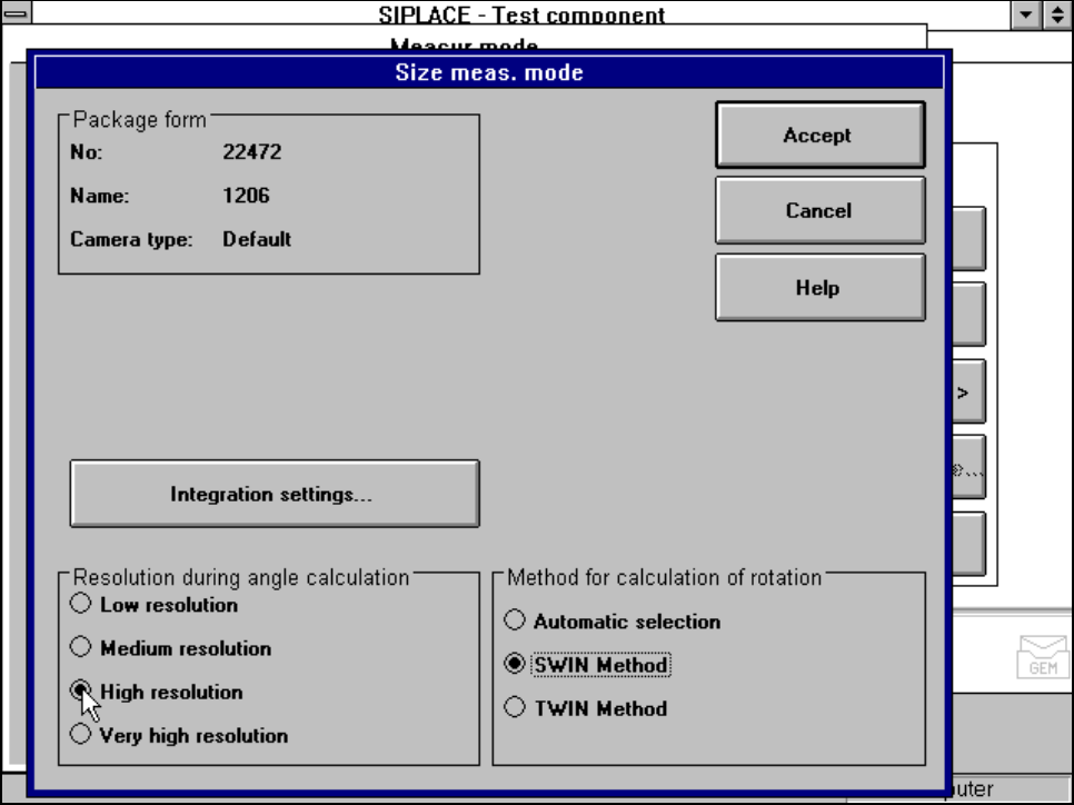 If you click on the ’Integration settings’ field, the Integration settings of Size measuring mode menu will