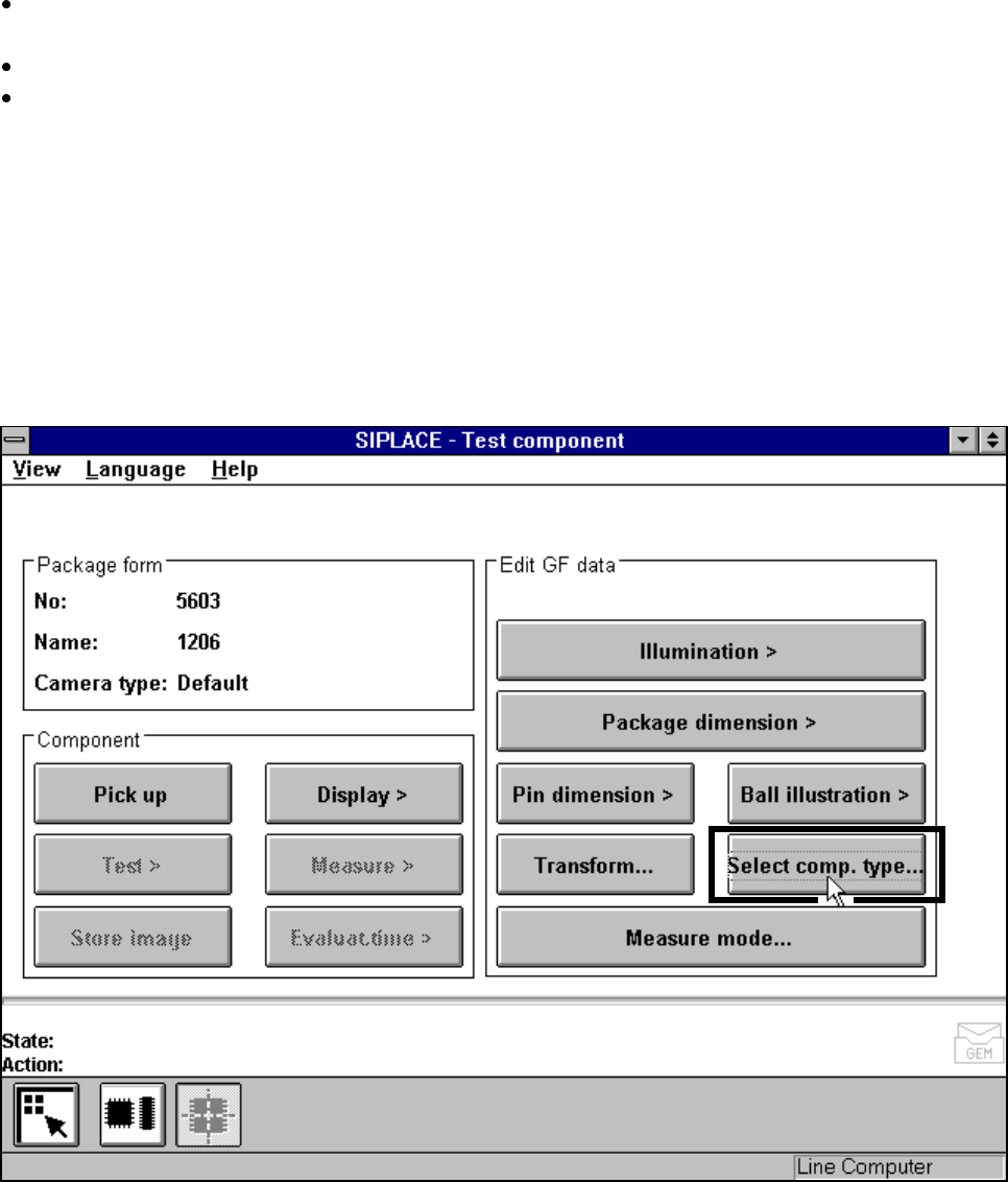 5 Vision Functions SIPLACE 80S-20/F4/F4-6/F5 User’s Manual 5.10 Test Component: Supplements to the 80F4, 80F4-6 or 80F5 Machines Ed ition 03/98 from Software Version SR.404.xx 5 - 160 Line engine er Fig. 5.10.4 Test comp…