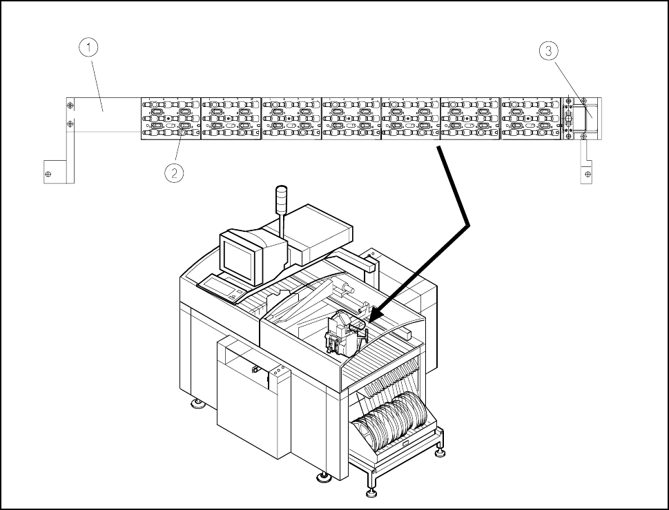 support located in the space between the board conveyor and the feeder modules (see Fig. 11.1.1). The posi-