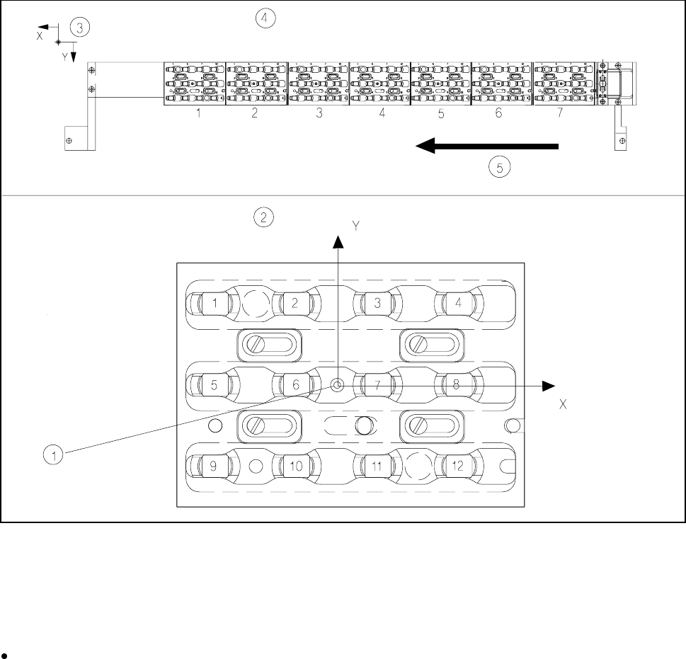 1 Position fiducial 2 Nozzle location in tray relative to the position fiducial