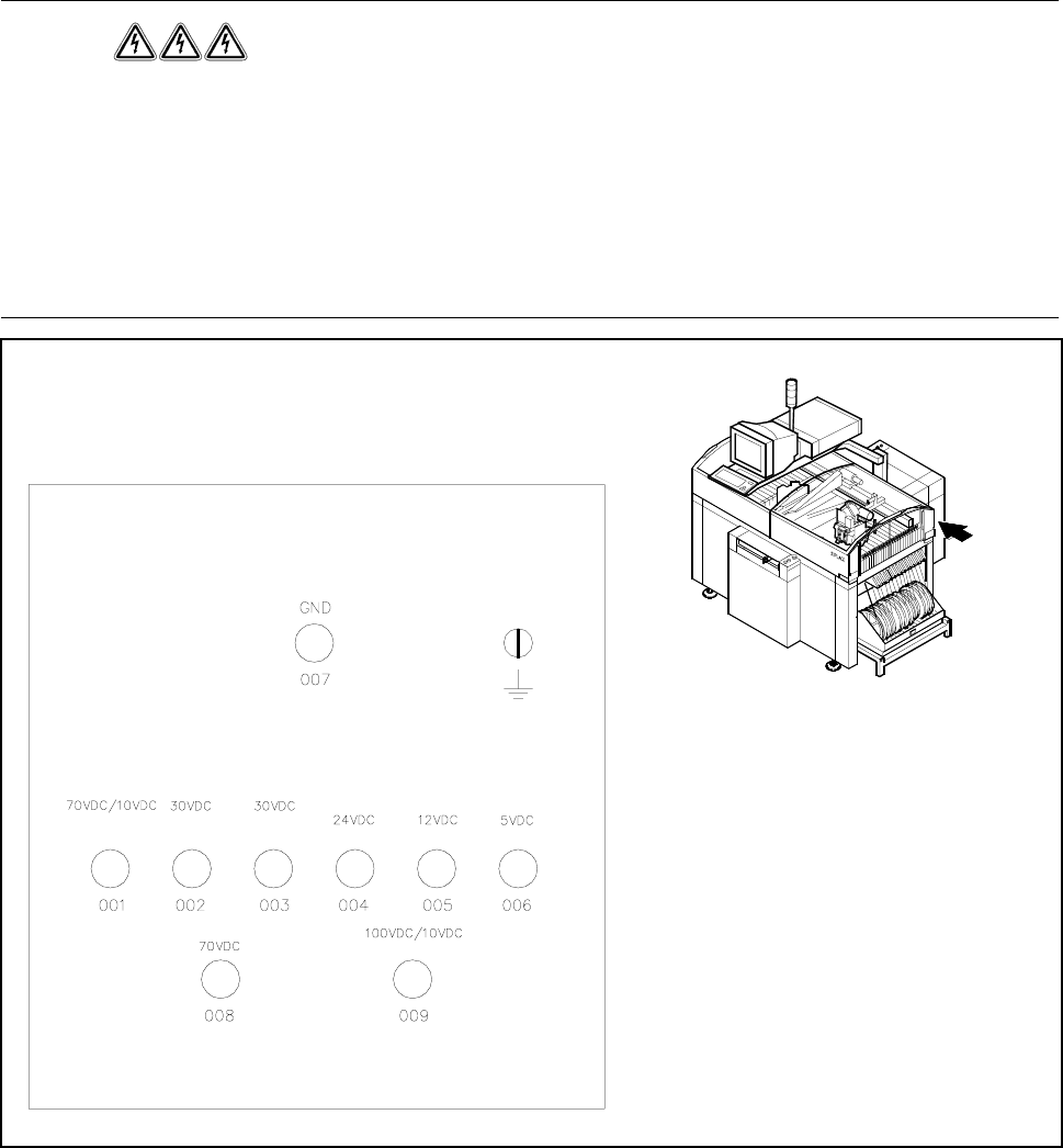 The voltages can be tapped off at test sockets 001 - 009 on the voltmeter unit in the servo unit.