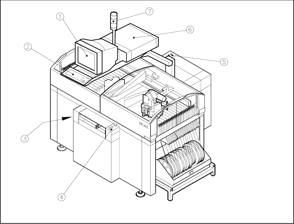 SIPLACE 80S-20/F4/F4-6/F5 User’s Manual 2 Introduction and Basic Concepts Edition 03/98 from Software Version SR.404.xx 2.1 Display and Controls on the Machine 2 - 3 2.1 Display and Co ntrols on the Machin e 2.1.1 Overvi…