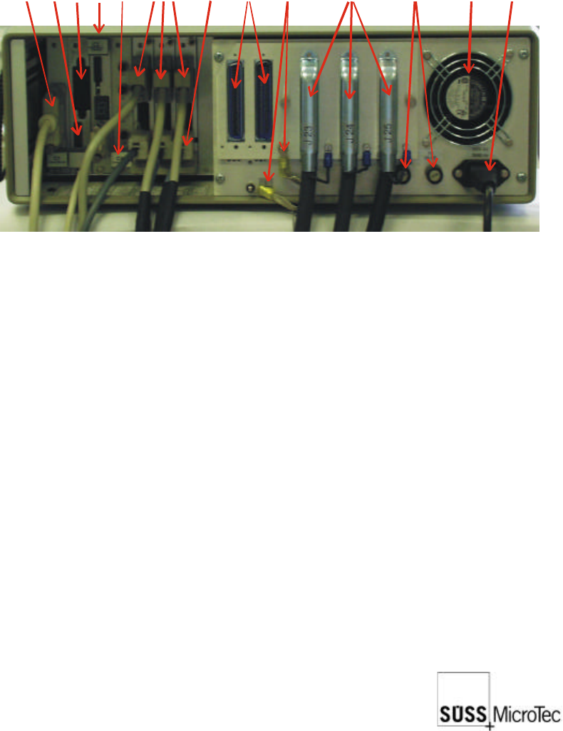 SUSS / PA300 / User Manual / M10-121841-00 / February 2002 23 4.5 Electronics Rack M a i n m i c r o c o n t r o l l e r b o a r d M i sc . O u t p u t i n t e r f a c e c a r d ( C 4 ) M a i n f u s e s ( F 1 / F 2 ) F …