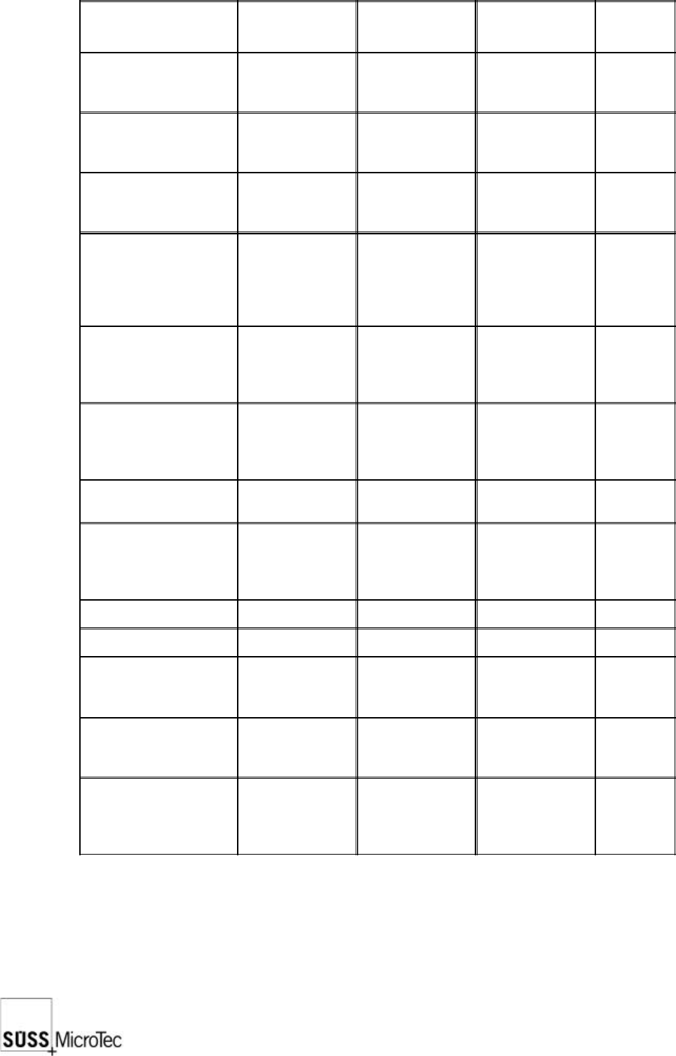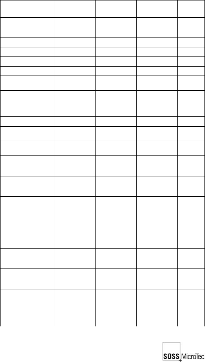 50 SUSS / PA300 / User Manual / M10-121841-00 / February 2002 Indicator Part SESC Criteria Actual Value Notes Full body clearance standing/ sitting position to be supplied by the customer see section 2.9.1 Any posture: u…