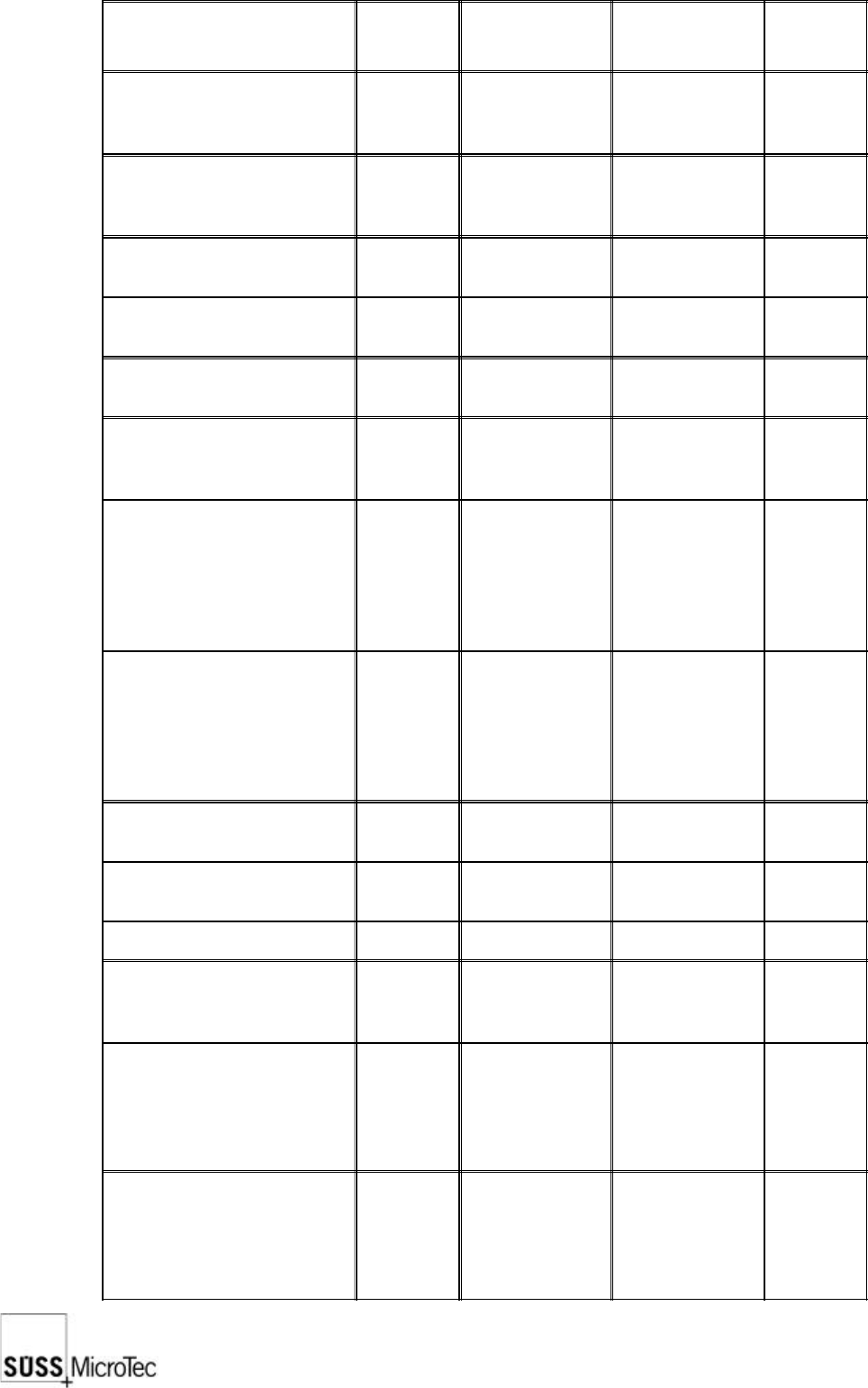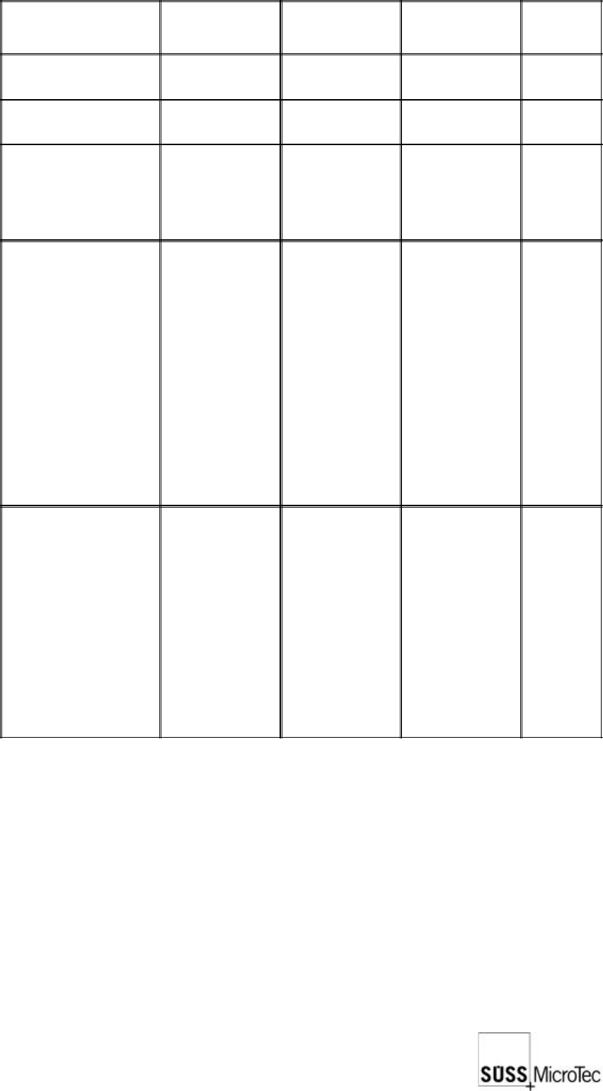 SUSS / PA300 / User Manual / M10-121841-00 / February 2002 53 Indicator Part SESC Criteria Actual Value Notes Hand Control Location Standing work place Prober hand control location optional Location of infrequently used …