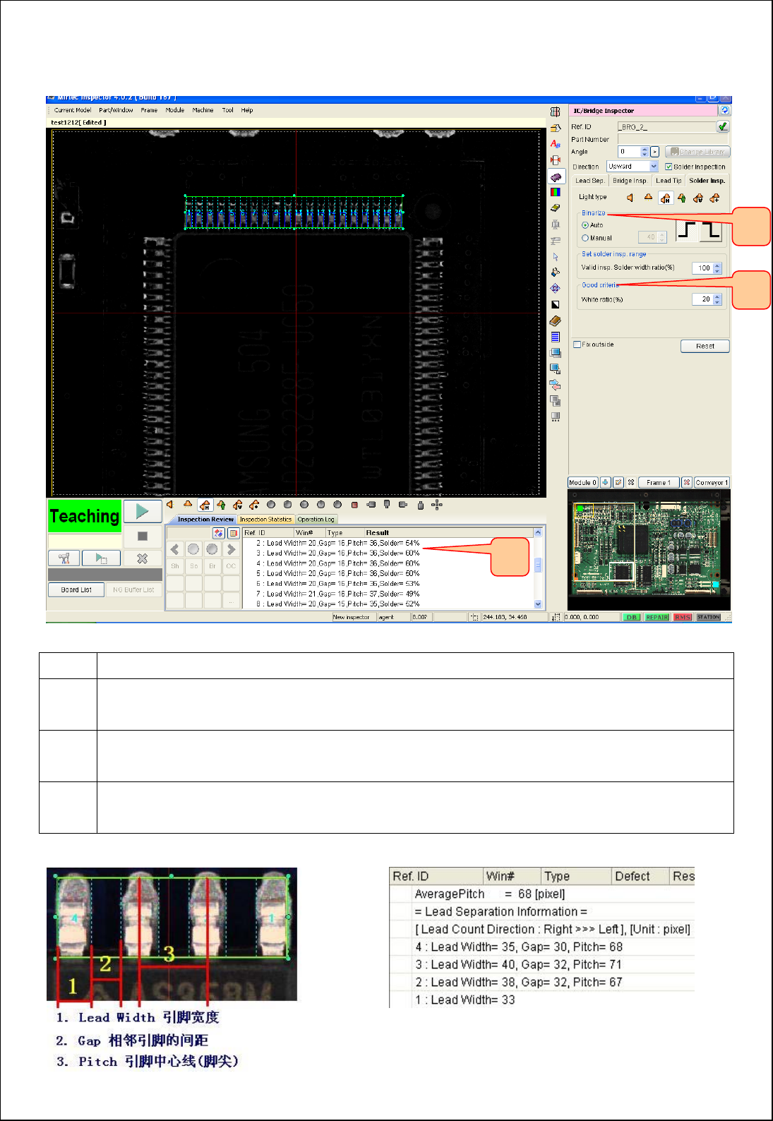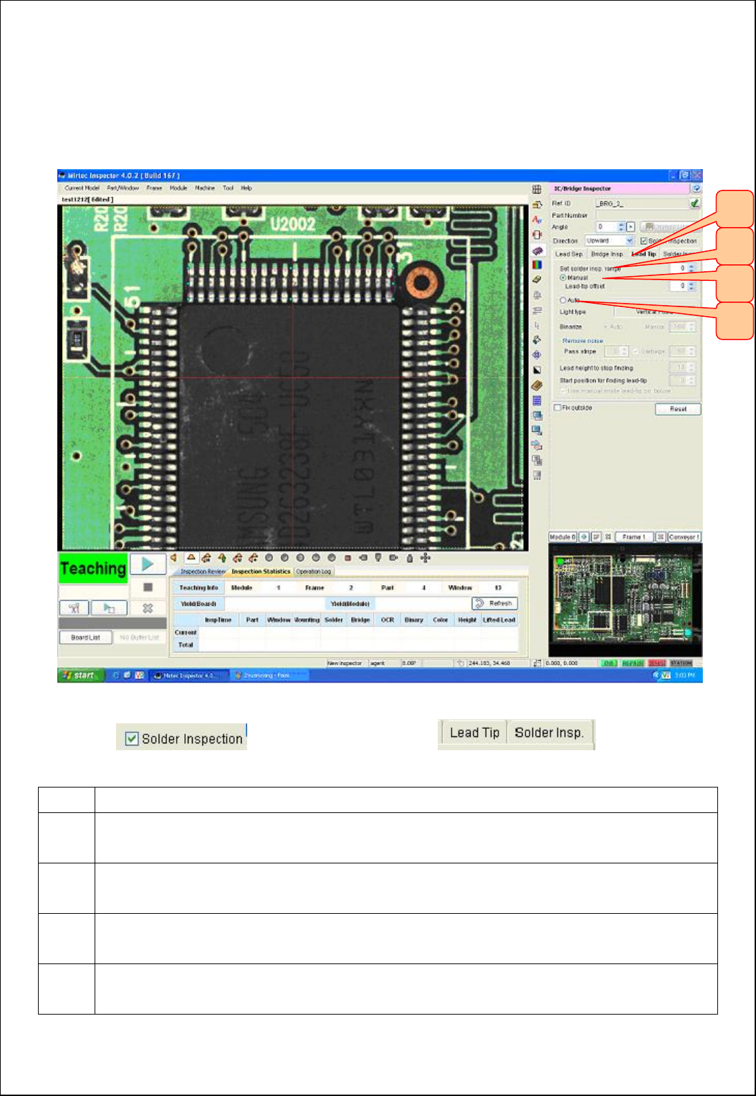 ▶ 设定 Lead Tip 位子及IC锡膏部分的检测范围。