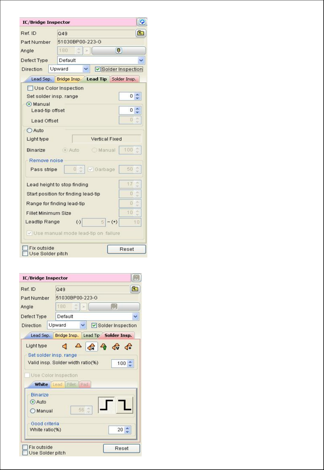 1-2) 设定检查范围(Range of Solder)