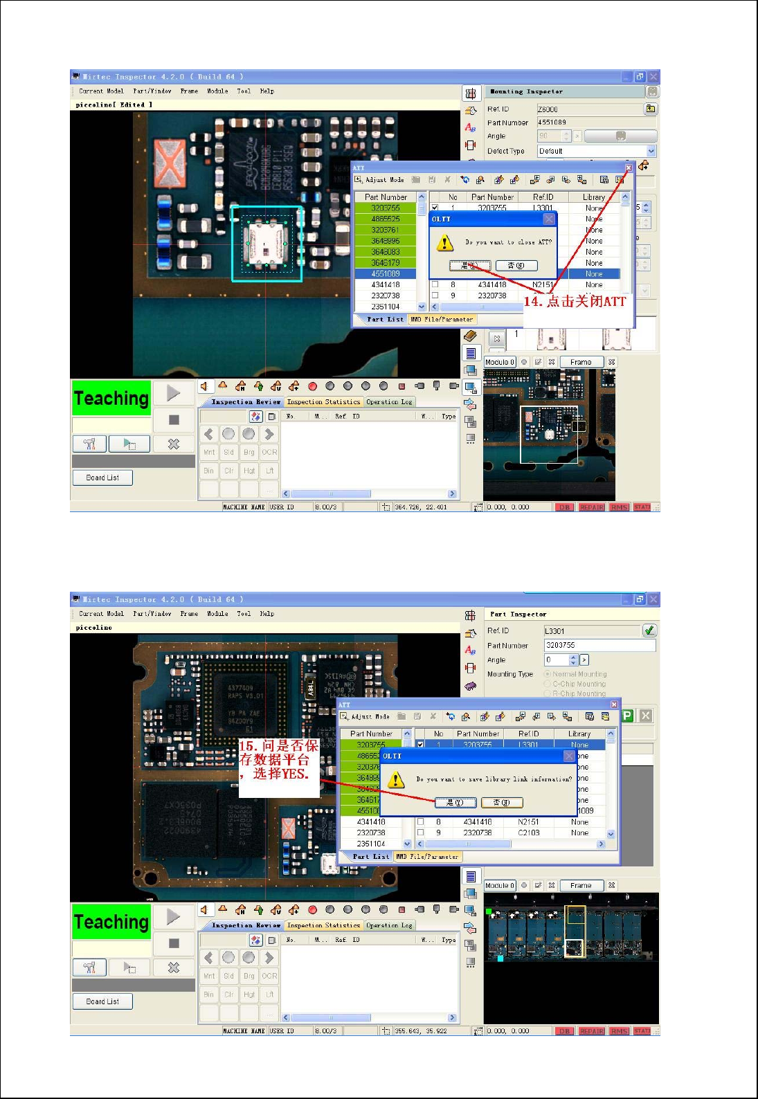 的列表中所有零件编程完成之后,只需,点击软件中Teach all part按钮便可对所有零件编程;
