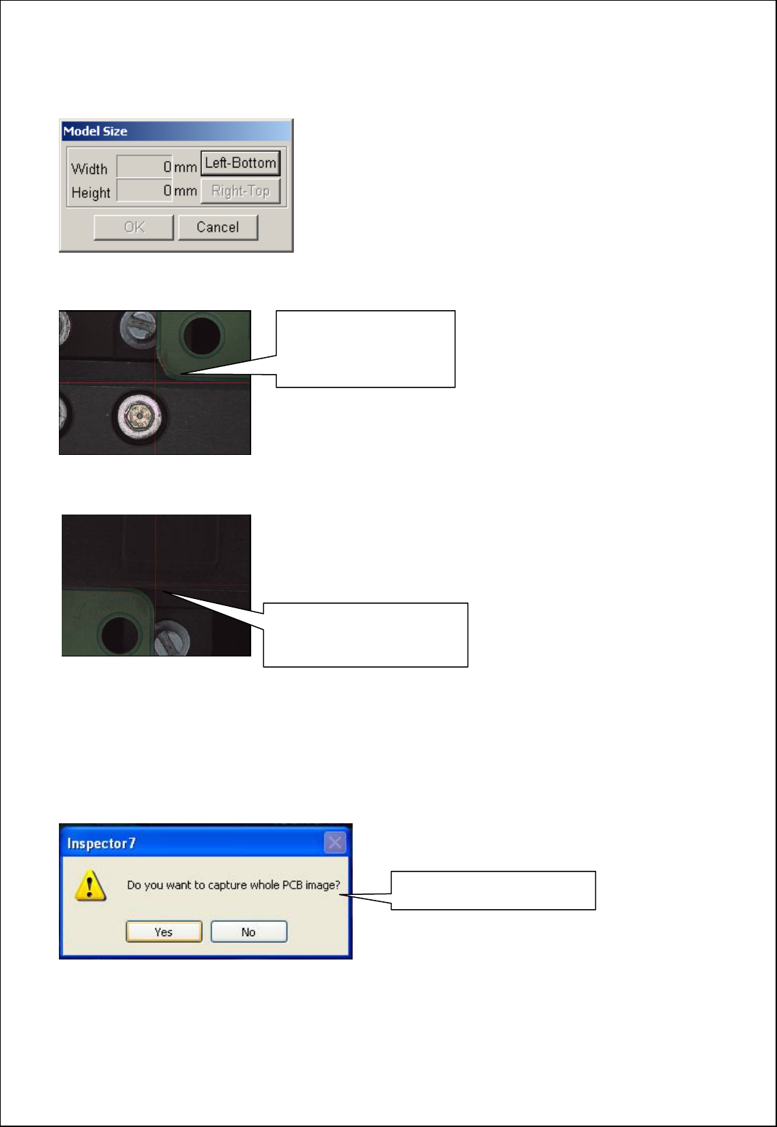 把照相机移动到PCB的左侧下面后,然后按 'Left-Bottom'按键。