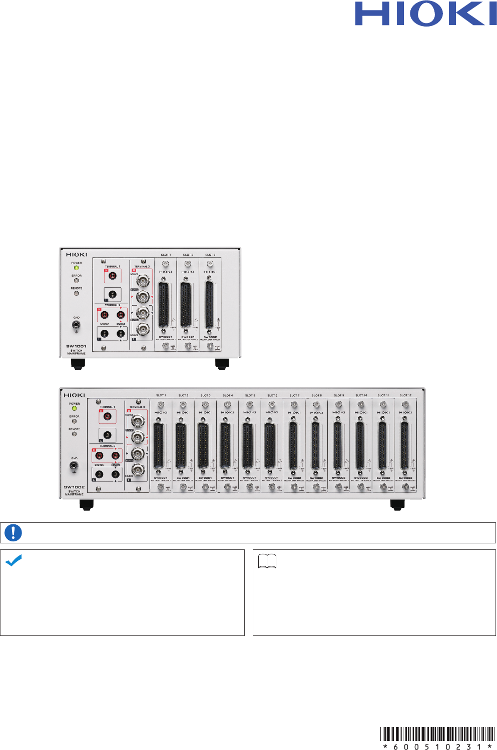 SW1001 SW1002 使用说明书 扫描模块机架 CN June 2019 Revised edition 1 SW1001A962-01 (A960-01) 19-06H 使用前请务必阅读  p.4 初次使用时 有问题时 各部分的名称与功能  p.8 维护和服务  p.127 测量流程  p.12 错误显示与处理方法  p.128 测量前的准备  p.13 SWITCH MAINFRAME 保留备用 联系我们:400-…