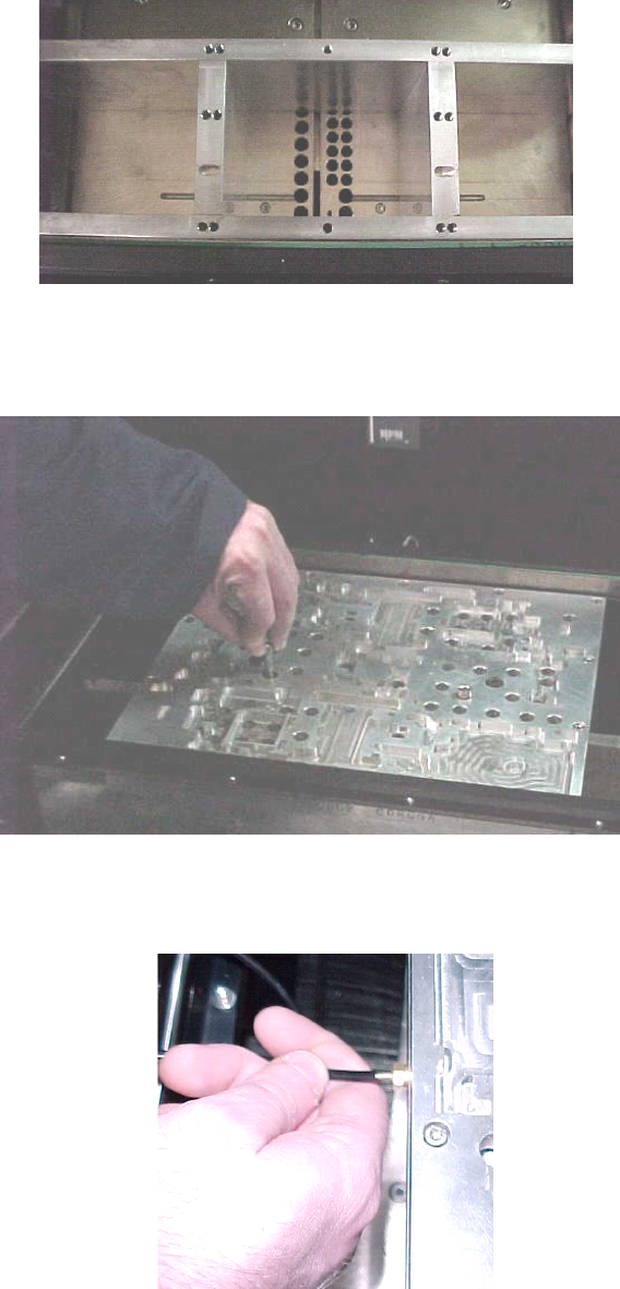 • 對准之后 , 用螺絲上緊真空板在 H 型架上 . 這時務必小心 , 不可太用力擰螺絲 ,