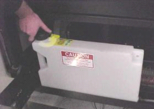 • 溶劑桶安裝在机器的前面 , 就在前門后面 .