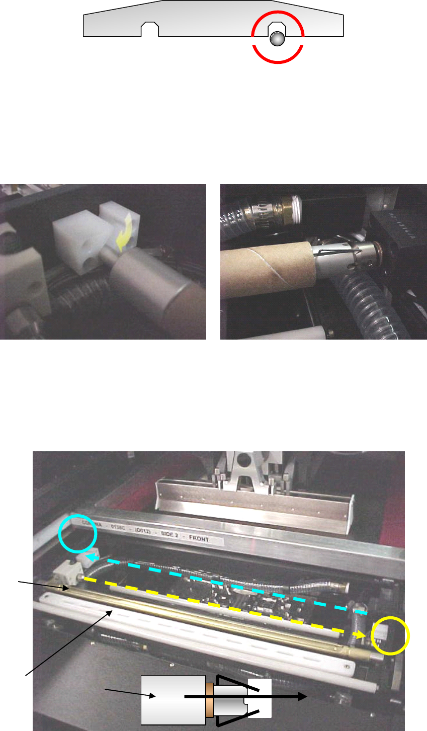 • 向机器前面拉擦机紙通過溶劑槽 , 真空柵 , 白色滾筒 .