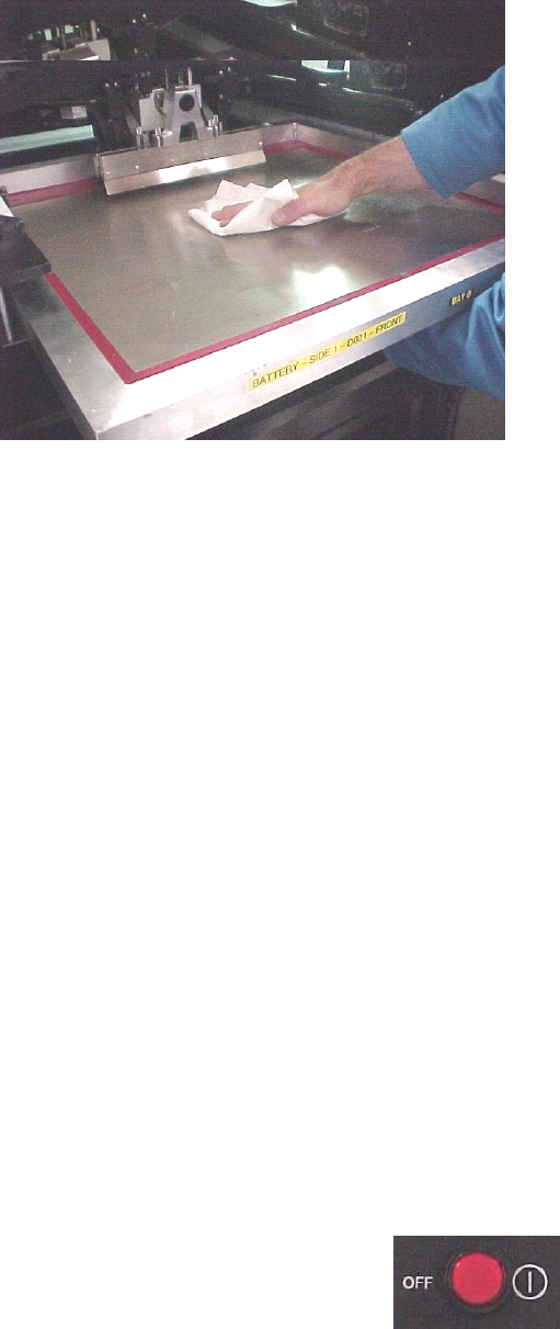 • 錫漿從印网上取走并貯存 ( 下一班使用 ) 或丟掉 ( 如果沒另一班接班時 ) .