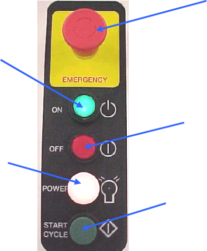 • 按下開電源按鈕 , 電源繼電器按通供電給机器部件 . 此時電源指示